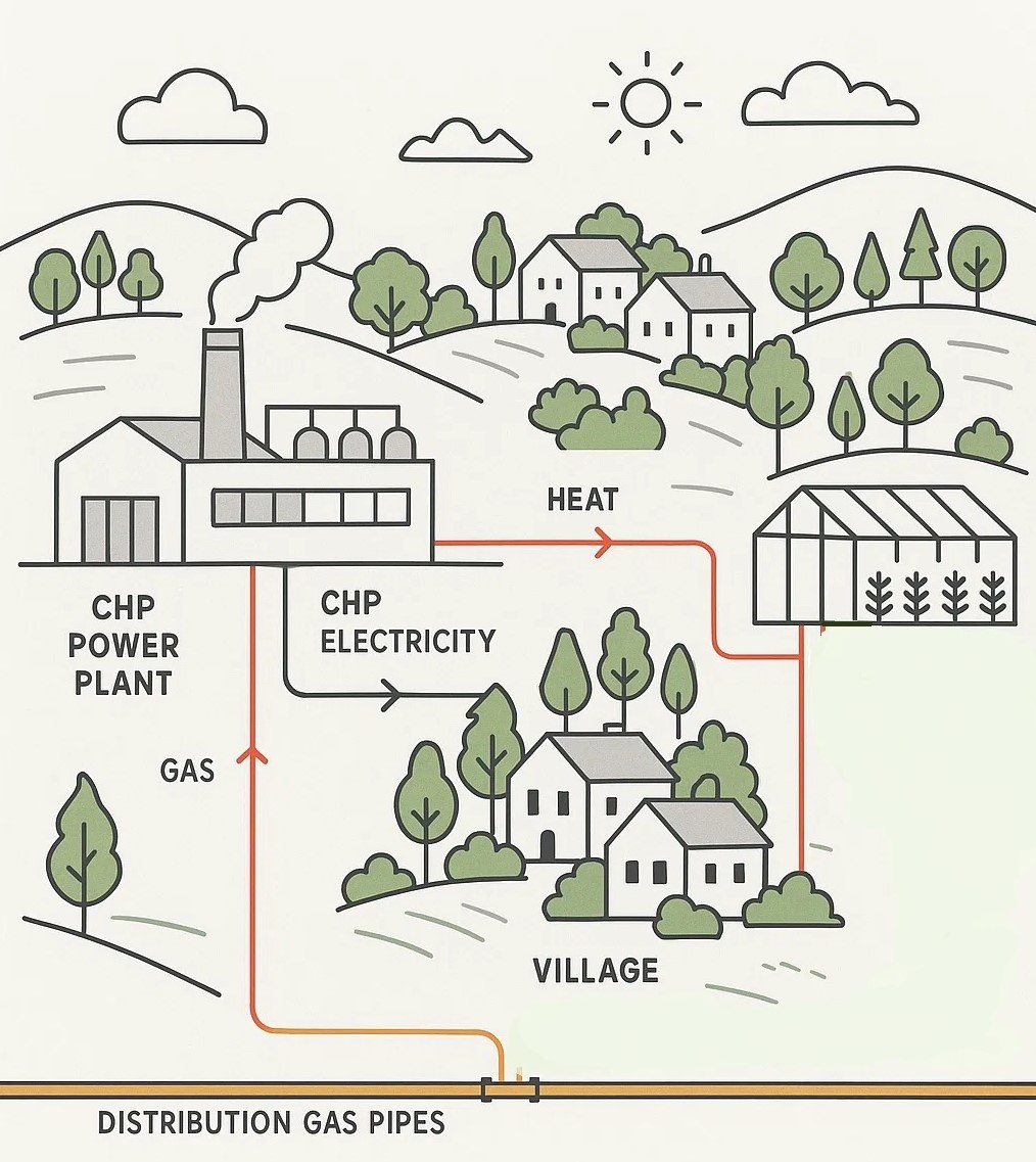 پروژه استقرار واحدهای تولید همزمان برق و حرارت (CHP) در روستاها، راهکاری نوآورانه برای بهبود کارایی انرژی، کاهش وابستگی به شبکه مرکزی و توسعه اقتصادی محلی است. تأمین برق و حرارت در روستاها از شبکه مرکزی با چالشهایی همچون تلفات ۲۰ تا ۳۵ درصدی، هزینههای بالای توسعه و نگهداری خطوط انتقال و تجهیزات گرمایشی کمبازده مواجه است. همچنین، استفاده از بخاریها، پکیجها و بویلرهای سنتی باعث مصرف بالای گاز و افزایش آلایندگی محیطی میشود.